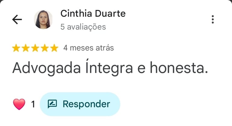 A Dra. Carina Marques foi fundamental na resolução do meu litígio. Sua abordagem ética e transparente trouxe confiança e resultados positivos. Recomendo seus serviços!